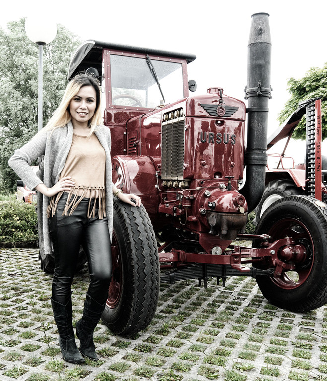Sängerin Dyscem mit einem Ursus-Traktor aus Polen