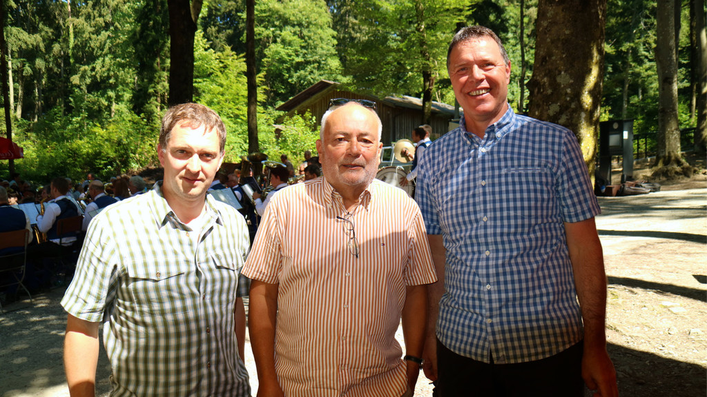 Betriebsleiter Christian Amann mit Präsident Wolfgang Burtscher und Vize Freddy Kaiser, Vorsteher der Gemeinde Mauren.