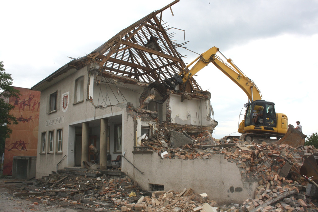 Die Abbrucharbeiten laufen: Das alte Lochauer Gemeindeamt macht Platz für das neue Gemeinschaftshaus.