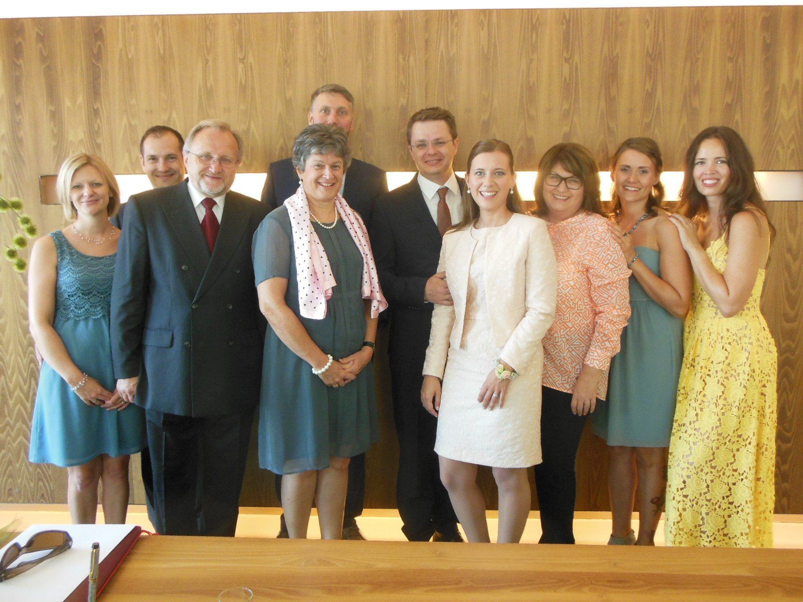 Das frisch vermählte Paar im Kreis der Hochzeitsgäste.
