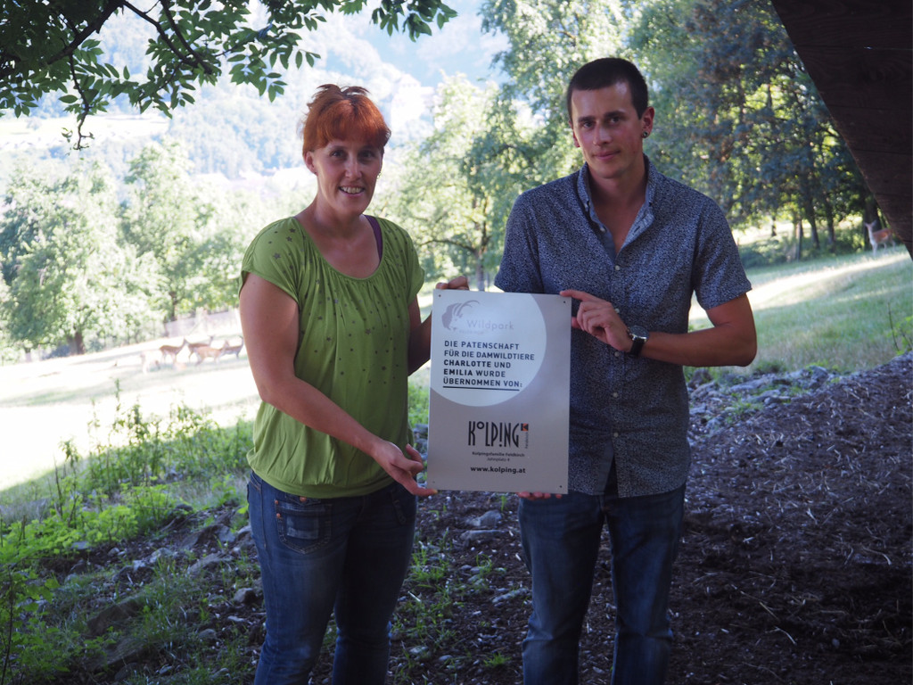 Einen Paten der besonderen Art haben jetzt die beiden Damwildtiere „Charlotte“ und „Emilia“, nämlich die Kolpingsfamilie Feldkirch, vertreten durch Obmann Lukas Laterner und Schriftführerin Sonja Schwendinger.