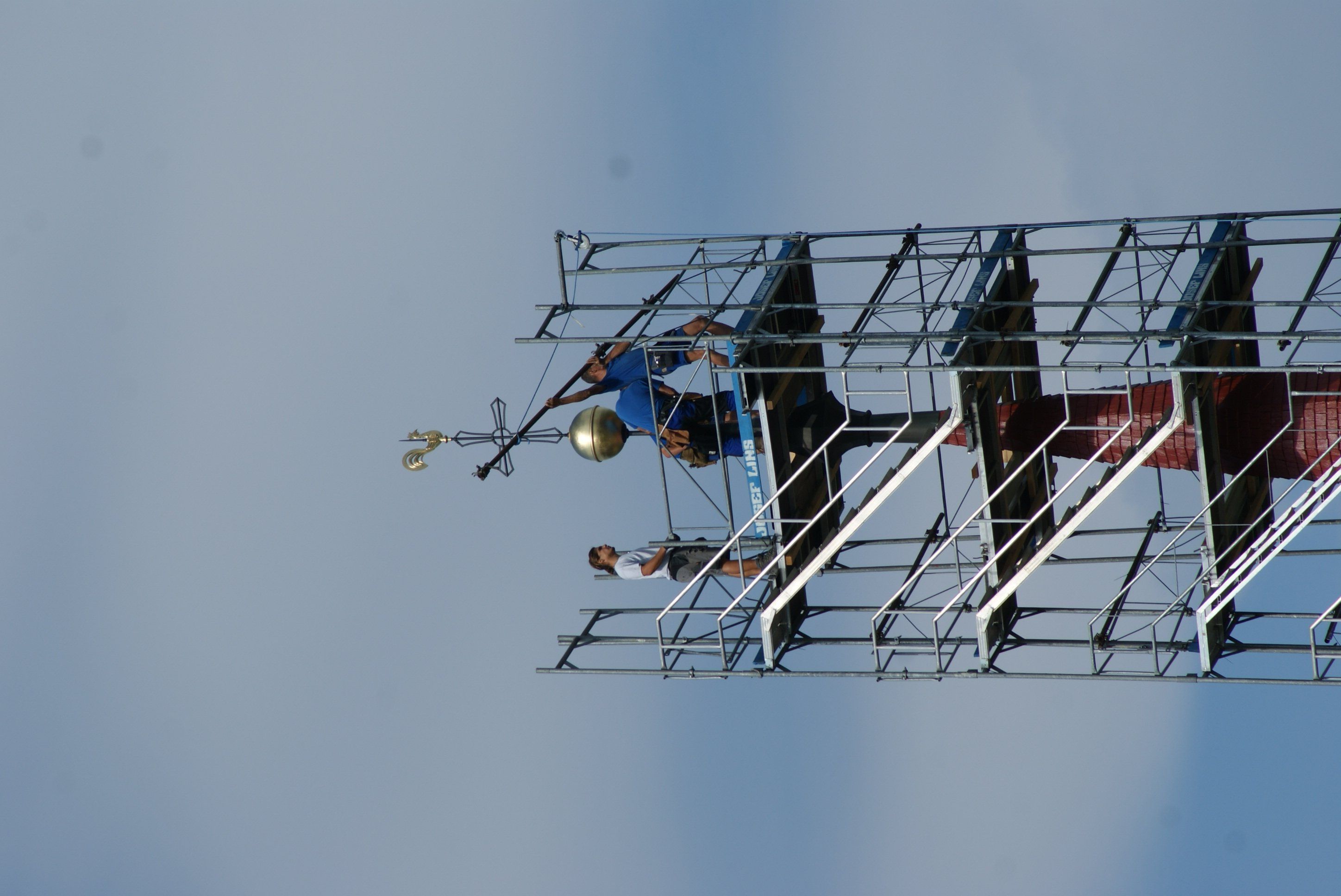 Anbringung Kugel und Wetterhahn