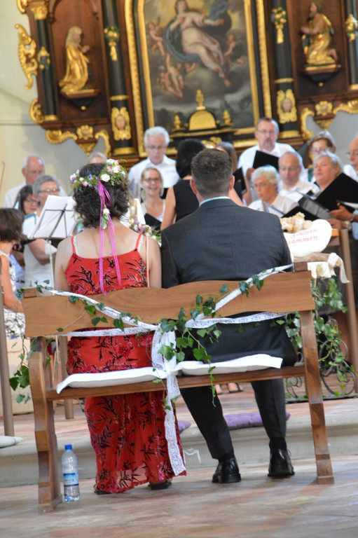 Hochzeit in St. Corneli Tosters: Brautpaar und Chor.