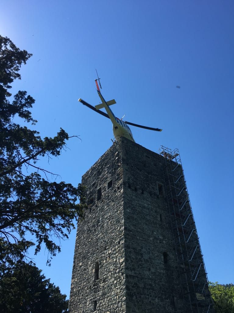 Materialtransport auf Tostner Burg per Heli