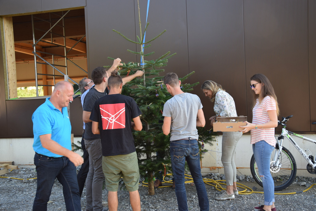 ...der Firstbaum wird liebevoll geschmückt...