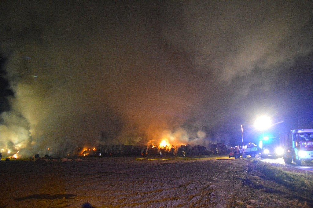 Großeinsatz in Fischamend: 2.000 Ballen Stroh standen in Flammen