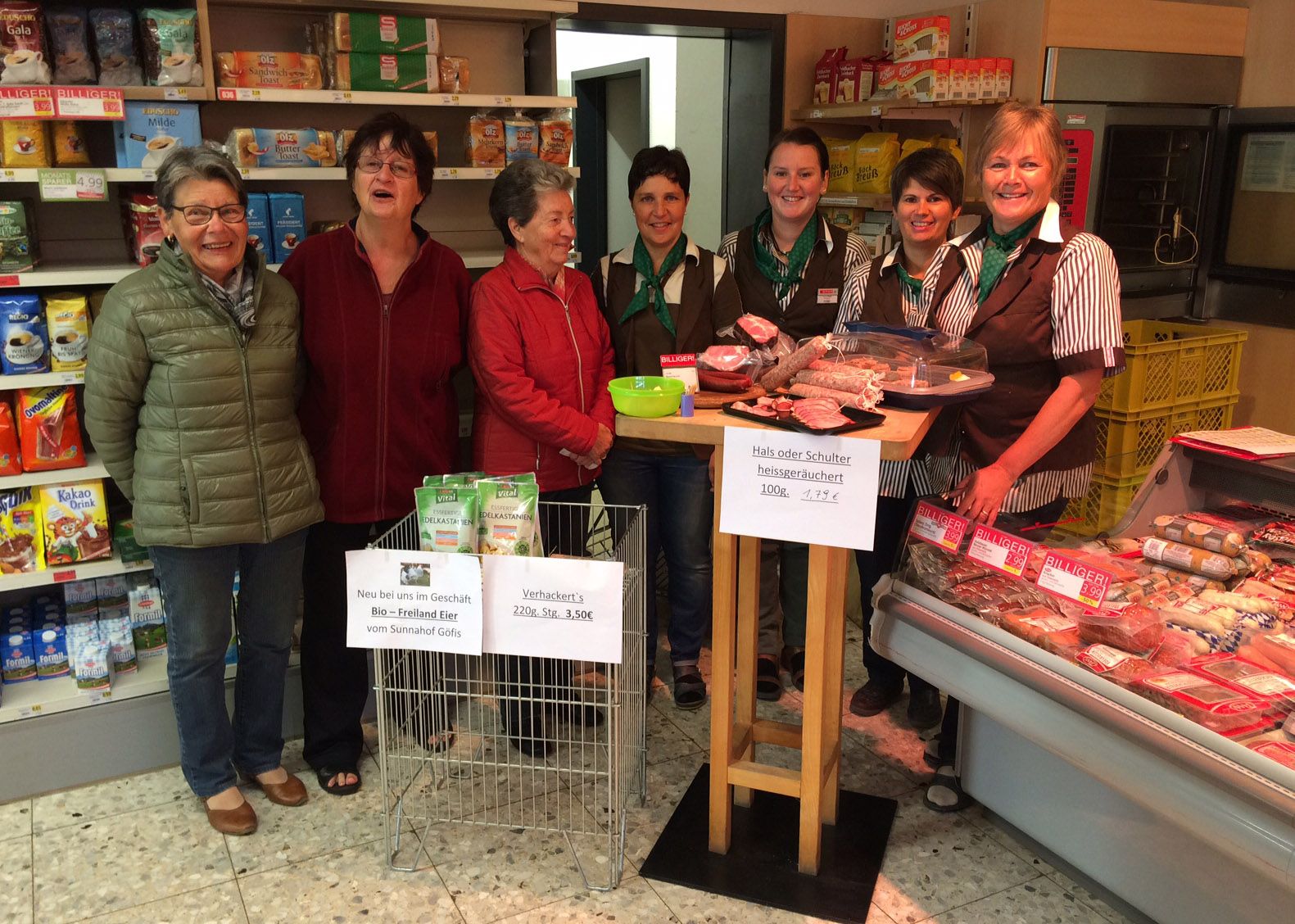 Kunden und das Verkaufsteam beim Tisch mit den Kostproben