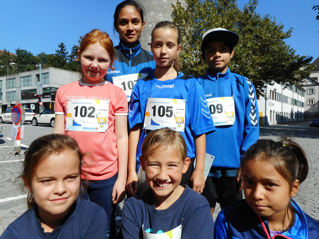 Läufer vom Handballclub Feldkirch. Vorne von links: Katarina, Jaqueline, Kimberly; Mitte v. links: Fabienne, Collien, Sean; hinten: Christina (Trainerin)