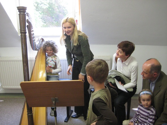 Aneta Marie Pichler zeigte den kleinen "Engelchen" das Harfespiel
