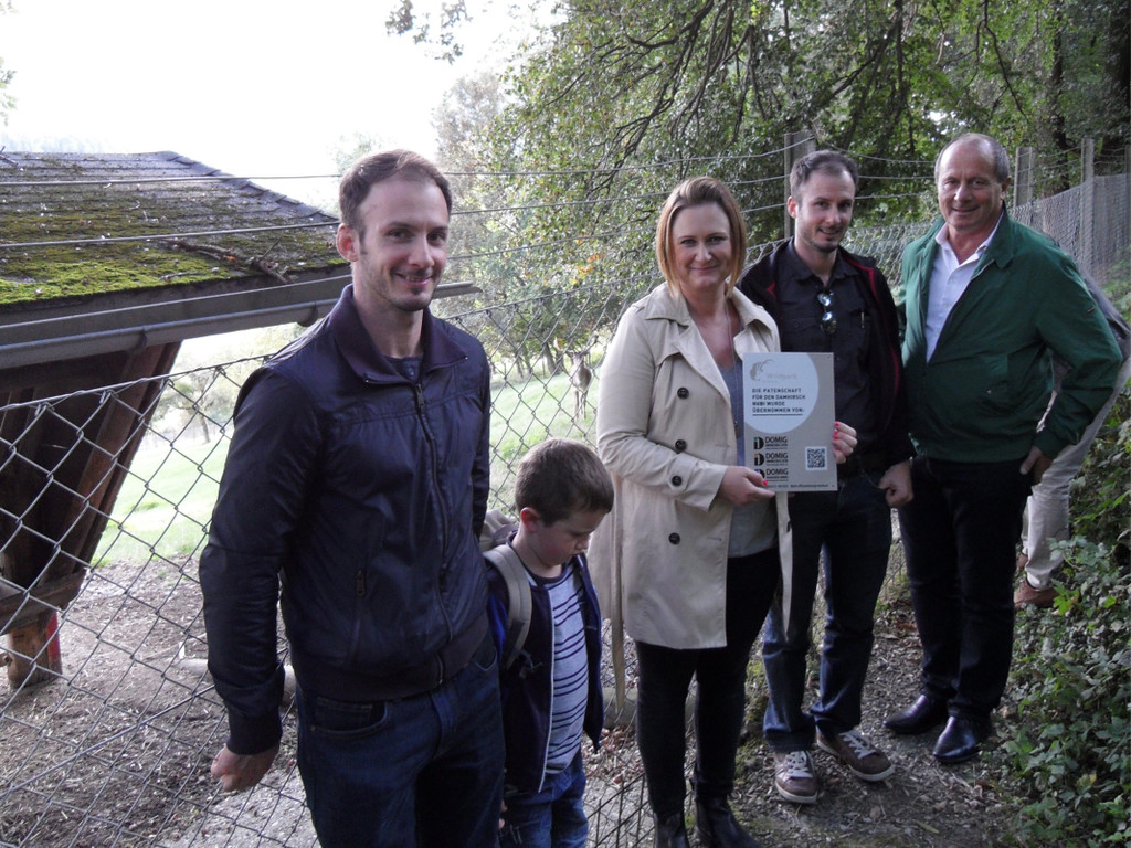 Die Patenschaft für Damhirsch „Hubi“ ist ein Überraschungsgeschenk von den Kindern Nadja, Marc und Andreas, an ihren Vater und Firmenchef Hubert Domig.