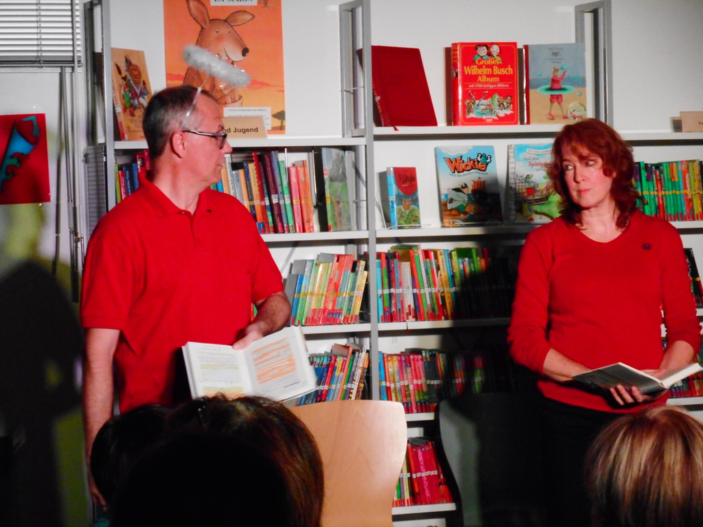 Theater Phönix spielte "Flotter Käfer, netter Wurm" in der Bücherei Tosters.