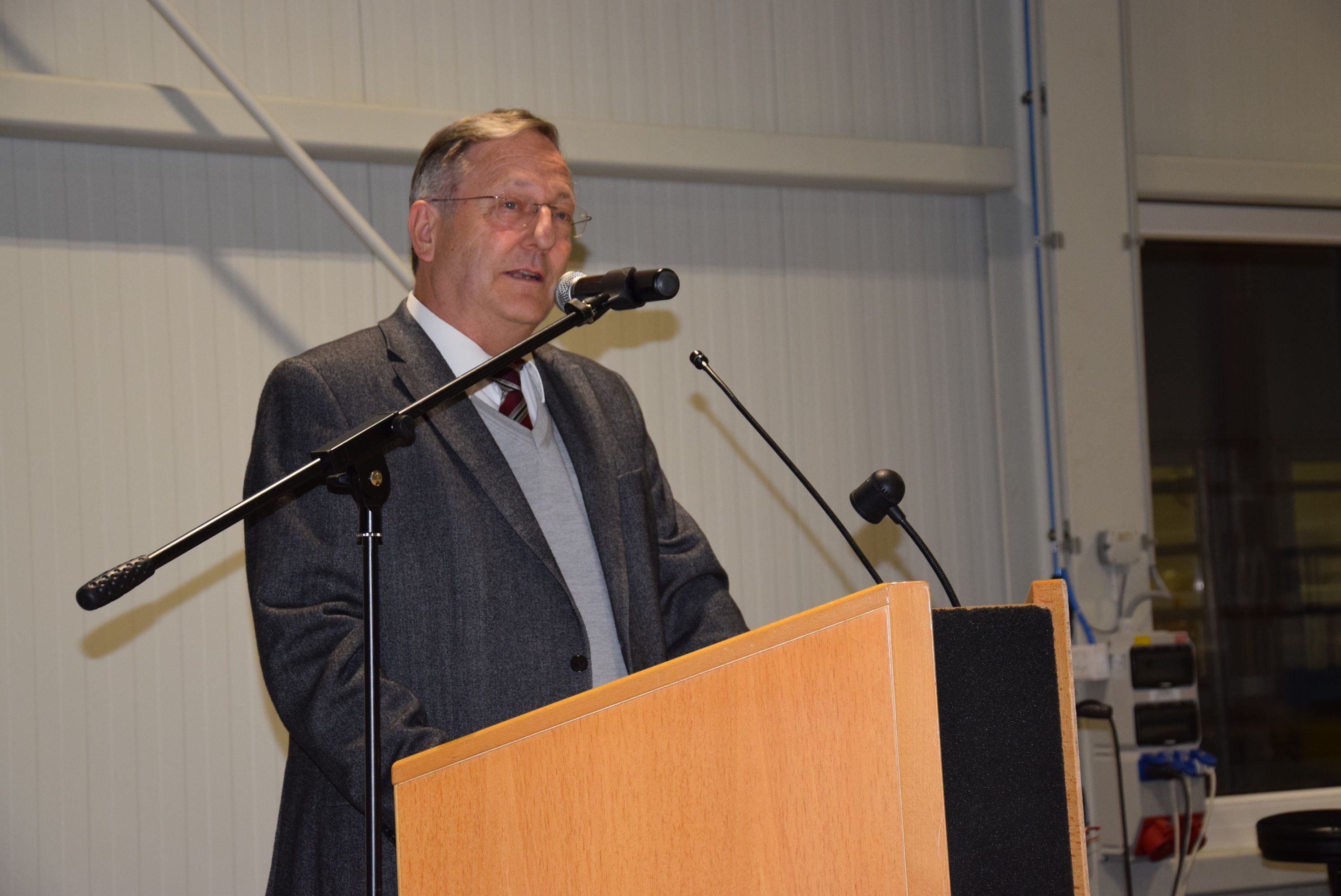 Pfarrer Wilfried Blum segnet die neue Halle