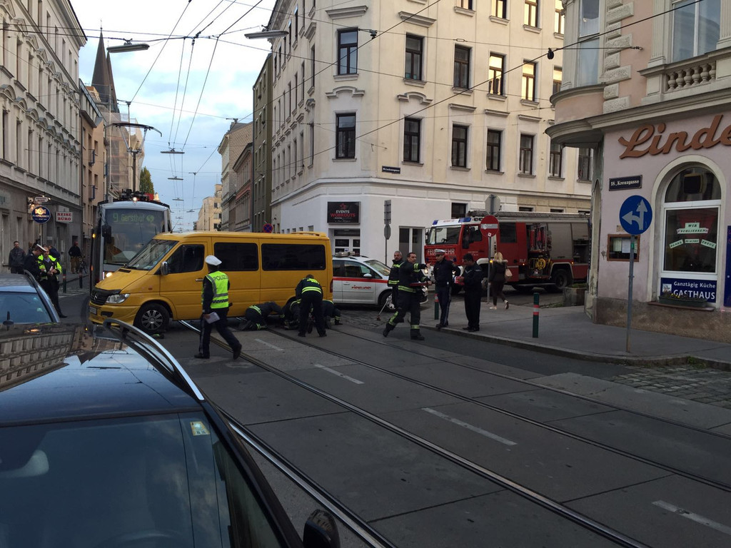 Leserreporter bei Unfall in Währing: Kleinbus crashte mit Straßenbahn