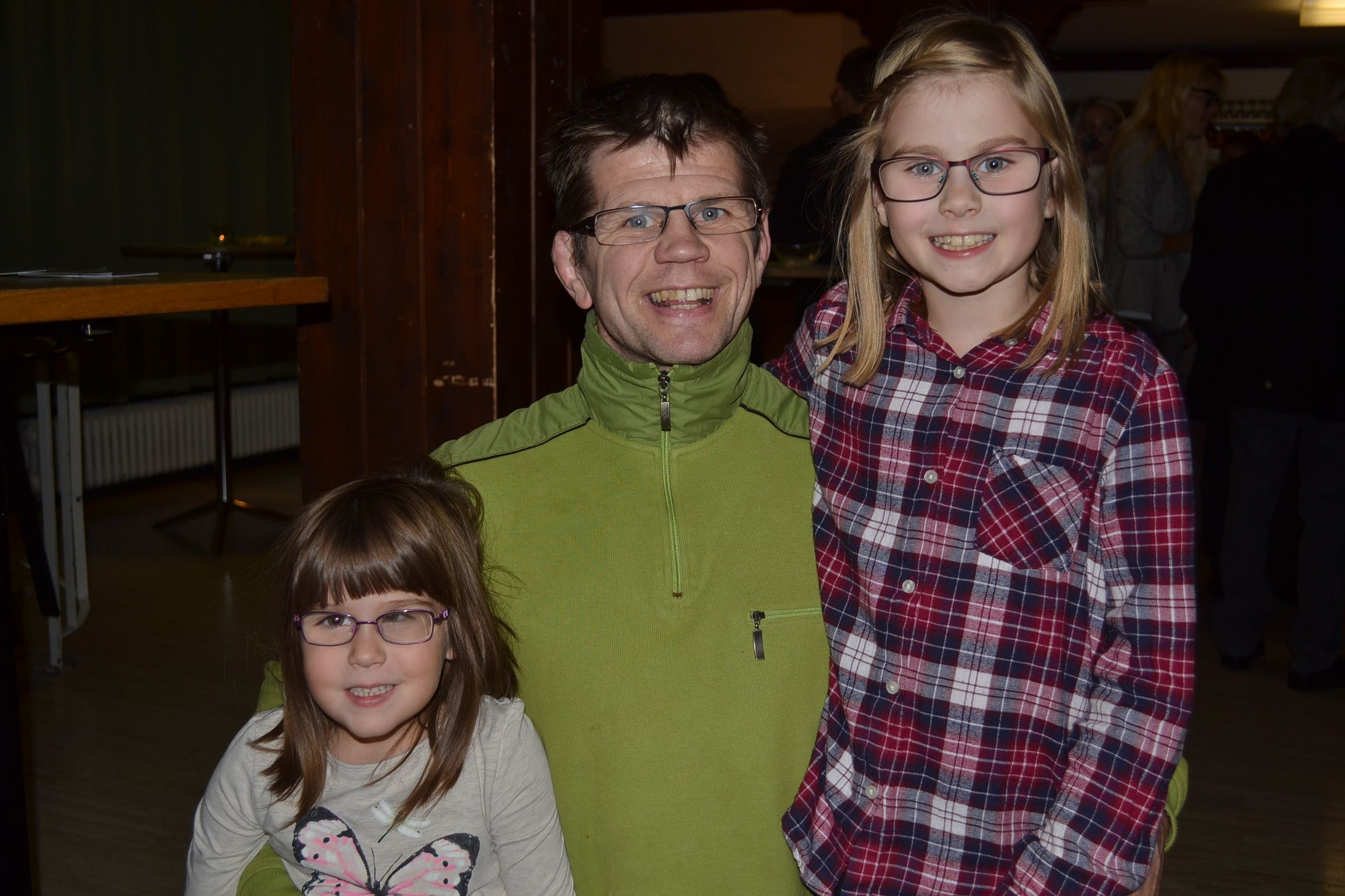 Martha und Lorena warten mit Papa Mario Hartmann gespannt auf Mama Esthers Auftritt.