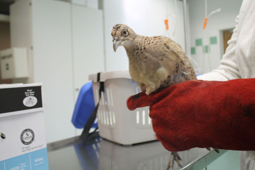 Fasan mit Schnabelklemme gerettet