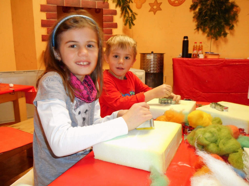 Katharina und Yannick filzten schon letztes Jahr im Lebkuchenhaus.