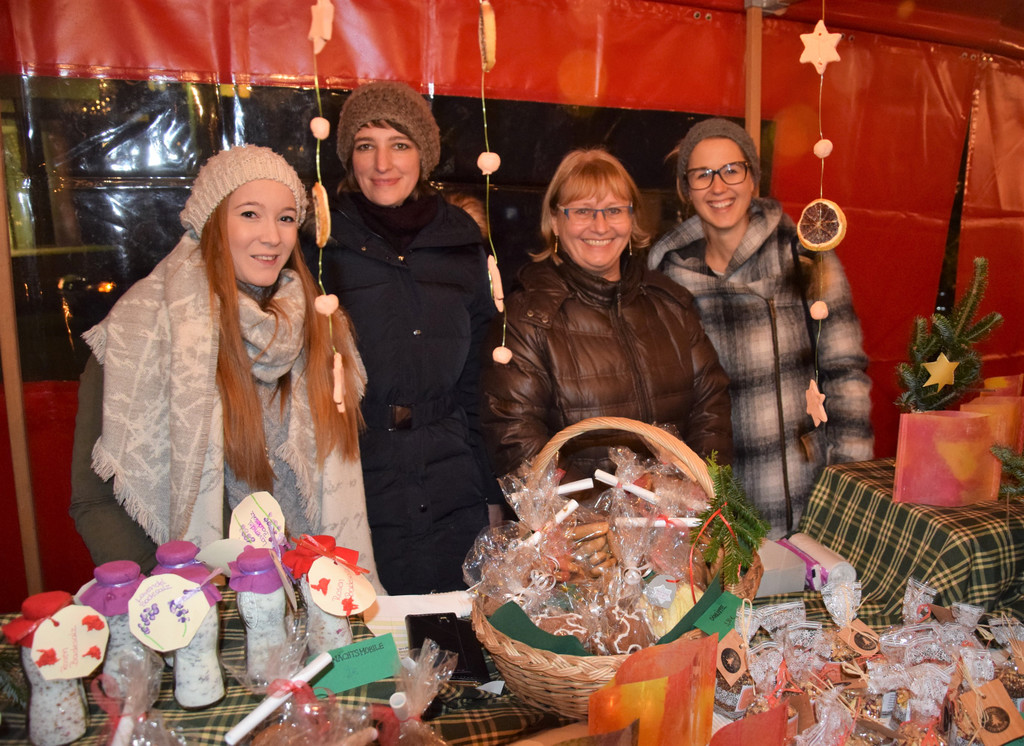 Götzner Kindergartenpädagoginnen verkauften weihnachtliche Basteleien auf dem Weihnachtsmarkt beim Jonas Schlössle