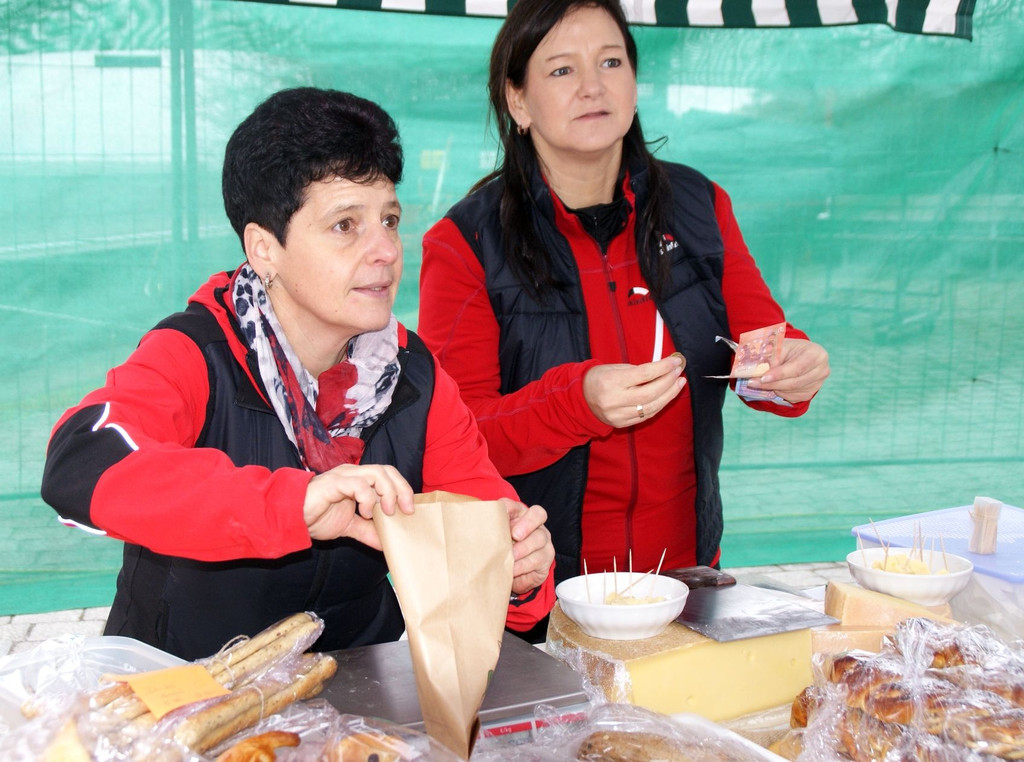 Vom Angebot der Aussteller wurde rege Gebrauch gemacht – Andrea und Karin (Moststüble) im Einsatz…