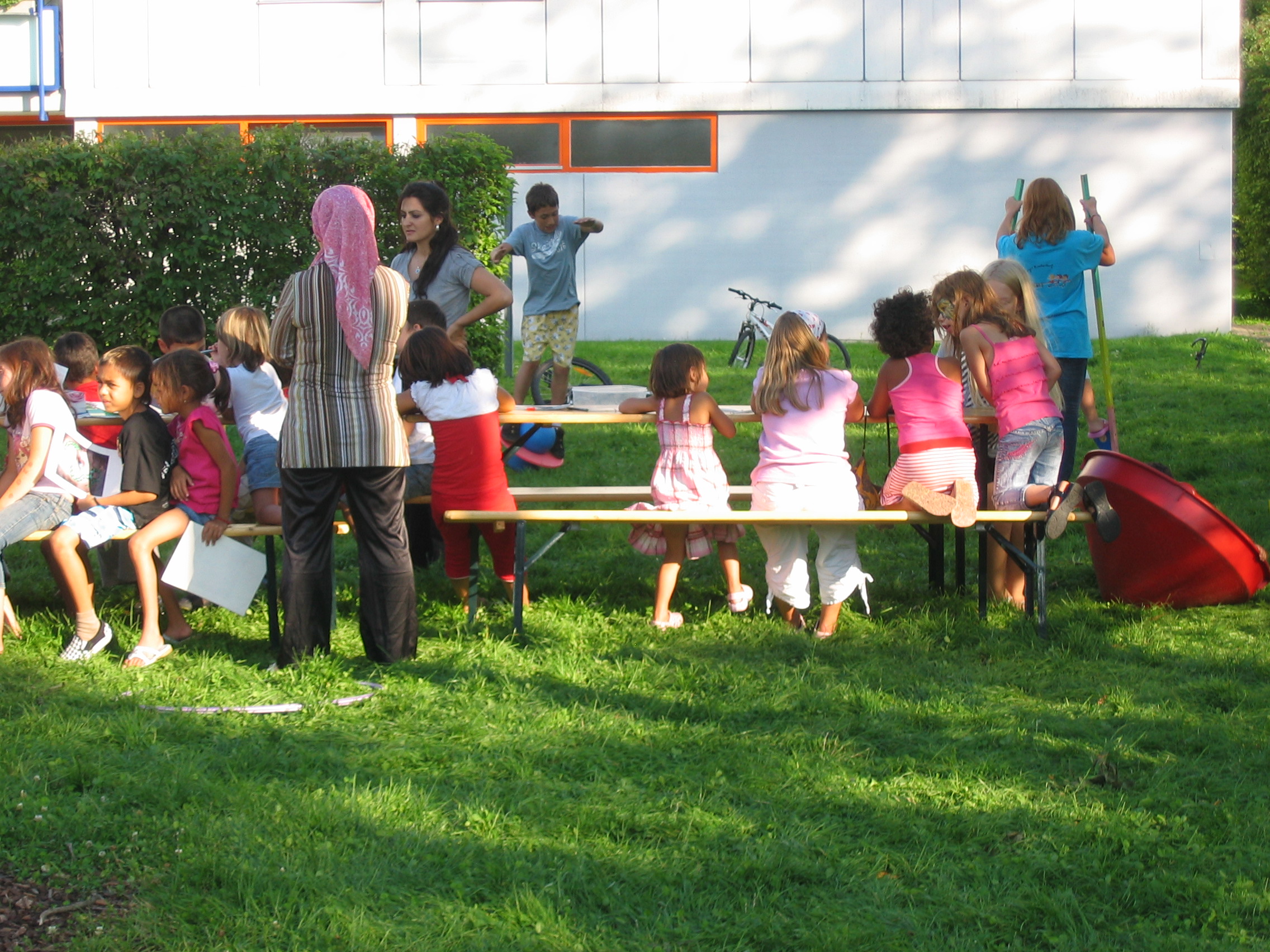 Begeisterte Kinder beim Spielebus