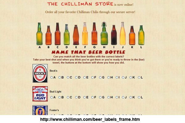Bizarre Freizeitunterhaltung: Picken Sie die Bier-Label auf die richtigen Flaschen...