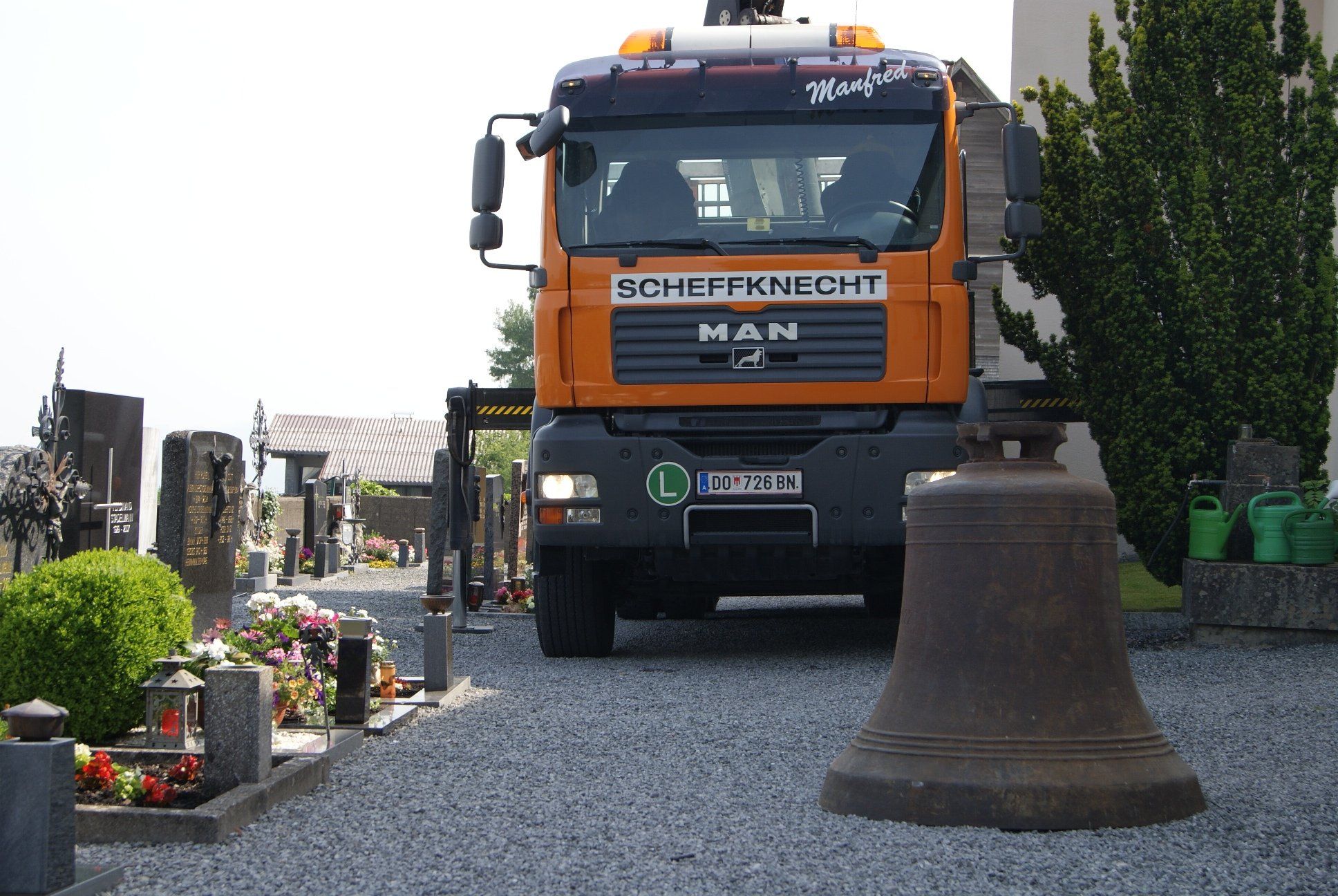 Knappe Sache: der LKW im Friedhof...
