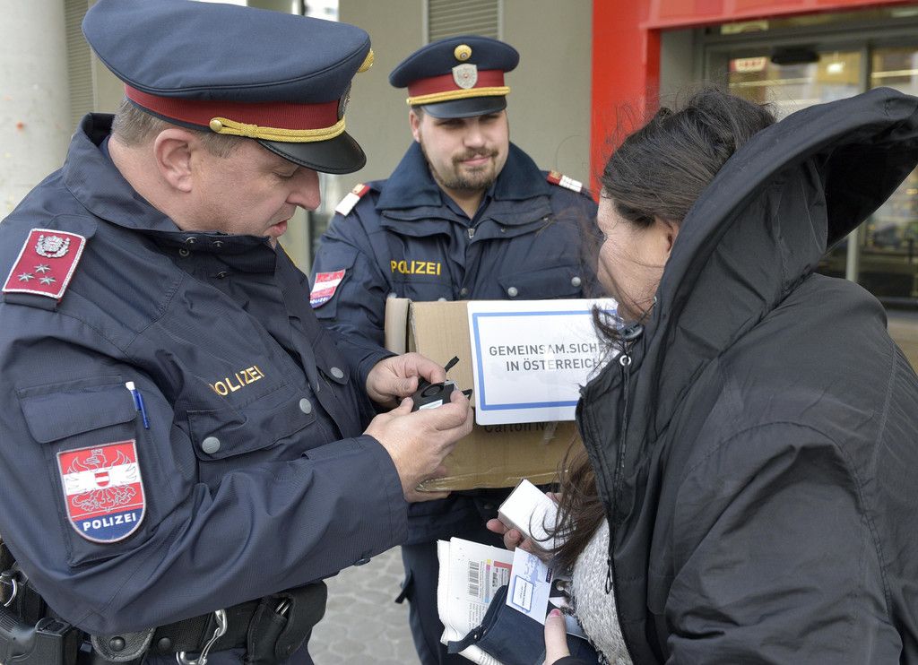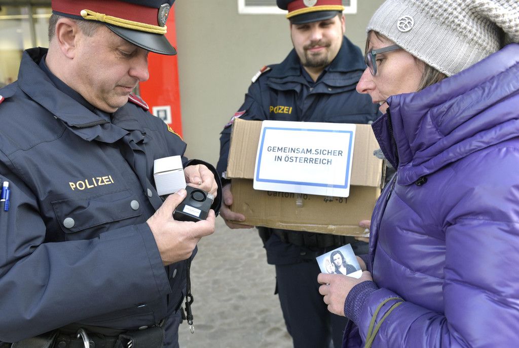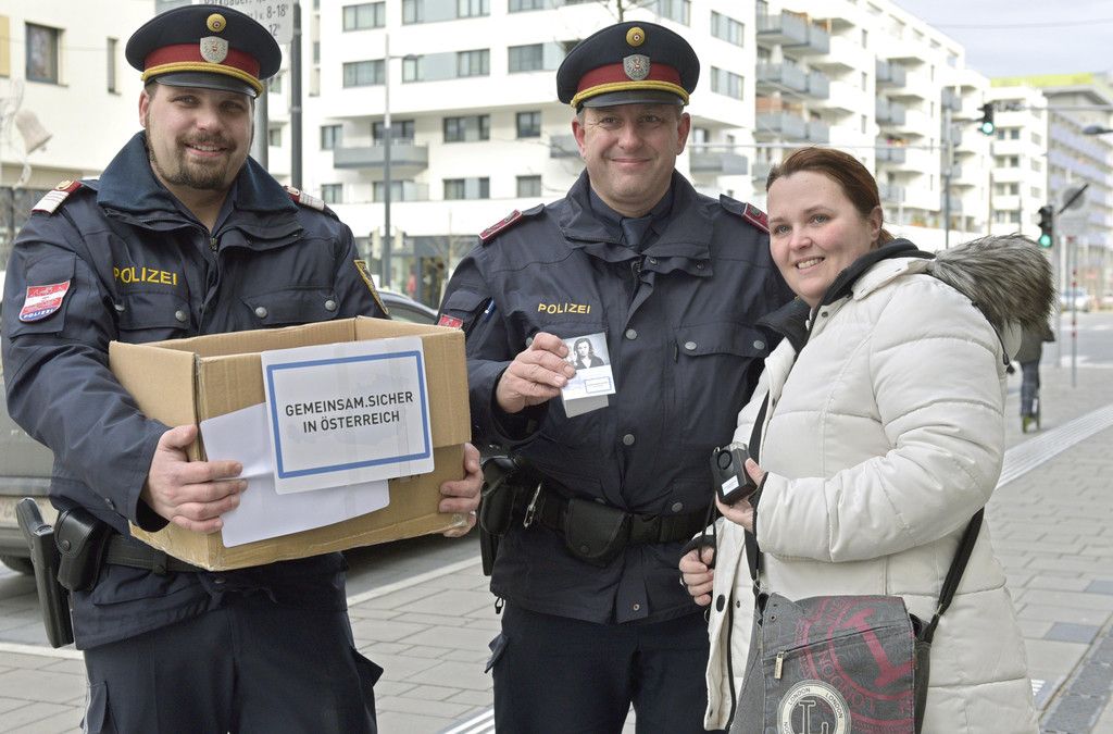 Wiener Polizei verteilt Taschenalarme: Bilder der Verteilaktion in der Seestadt Aspern