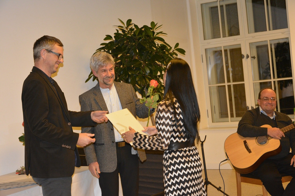 Übergabe der Zertifikate mit einer Rose.