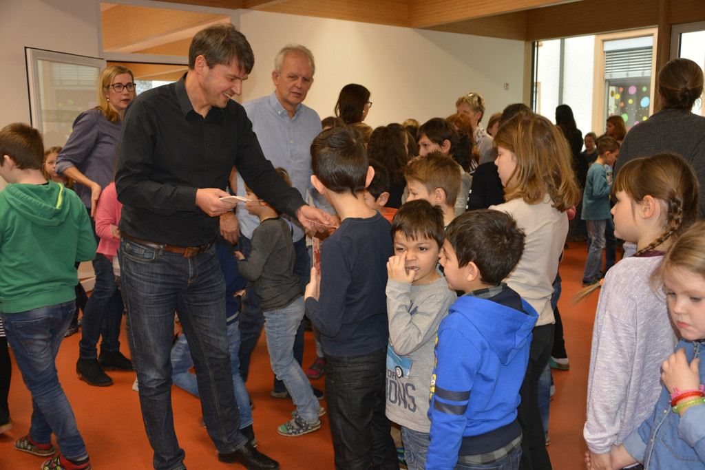 Jedes Kind bekam vom Bürgermeister ein Lesezeichen überreicht.