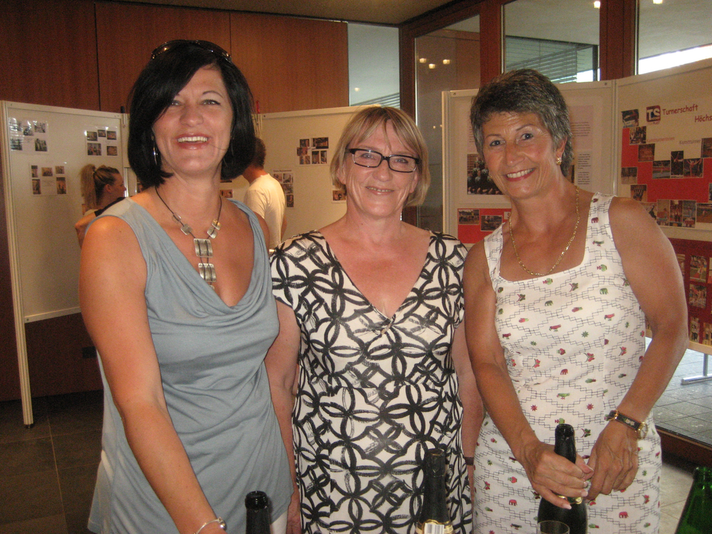 Christane Grabher, Edith Schallert und Cornelia Michalke beim Sektempfang
