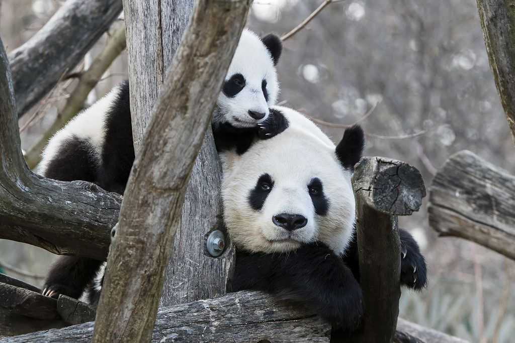 Panda-Zwillinge erkunden erstmals die Außenanlage im Tiergarten Schönbrunn