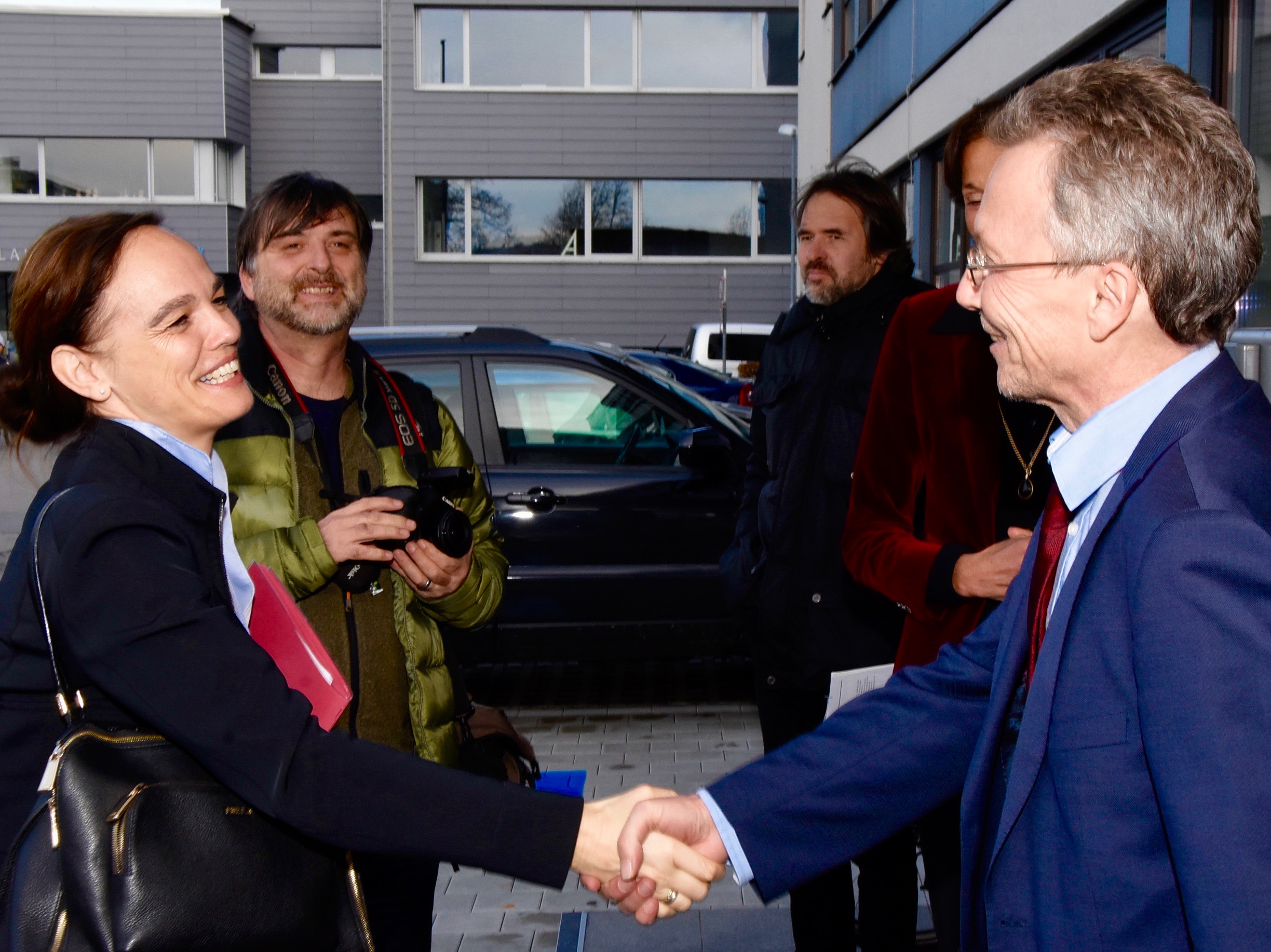 BORG Lauterach-Direktor Michael Schelling begrüßt Bundesministerin Dr. Sonja Hammerschmid an "seiner" Schule.