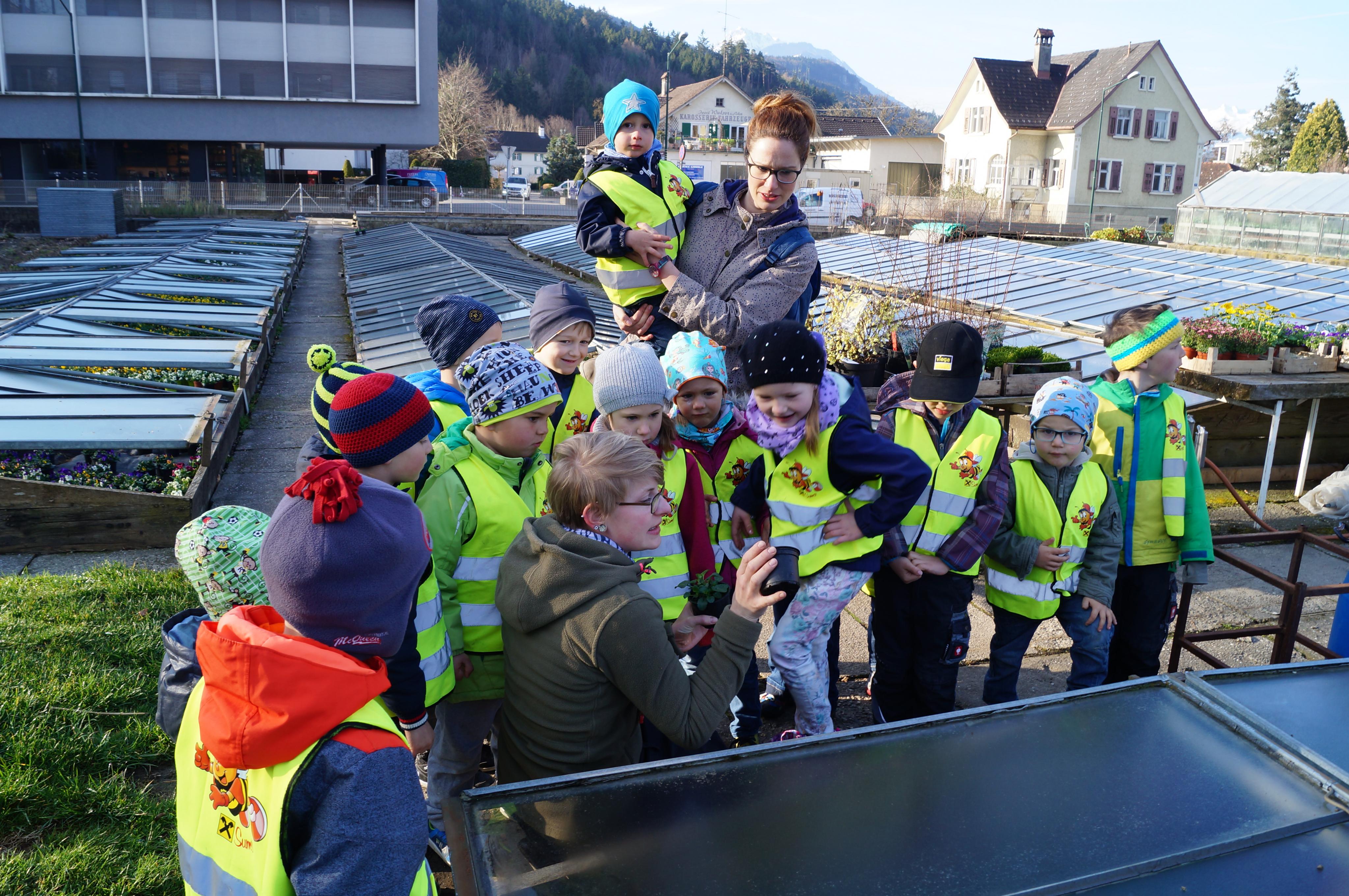 Kindergarten Übersaxen zu Besuch in der Gärtnerei.