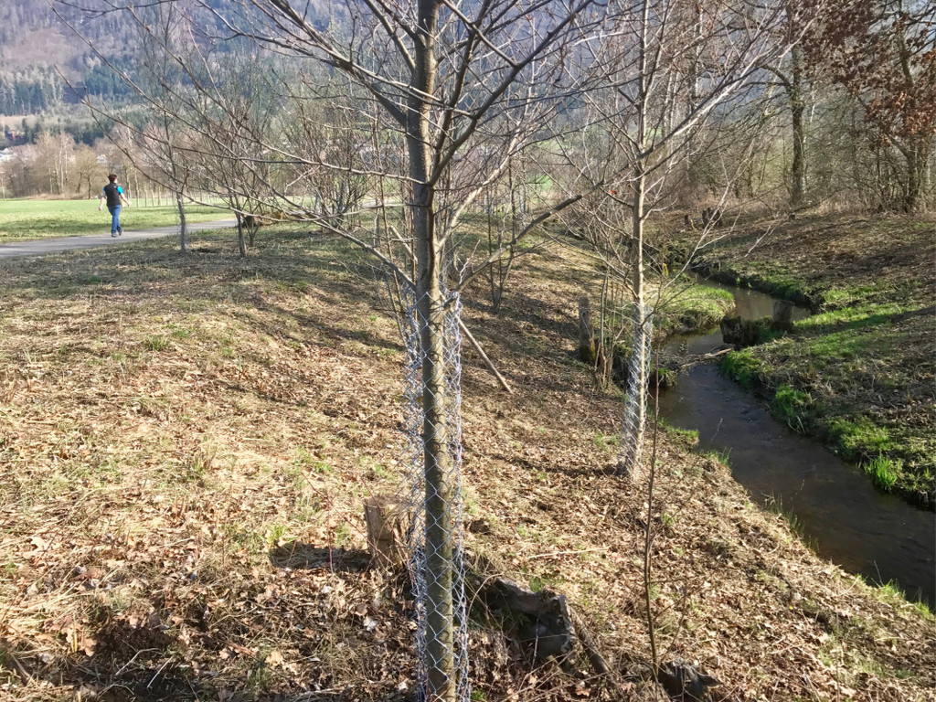 Um die Bissprobleme einzudämmen wurden die wichtigsten Bäume mit Drahtgittern zu geschützt.