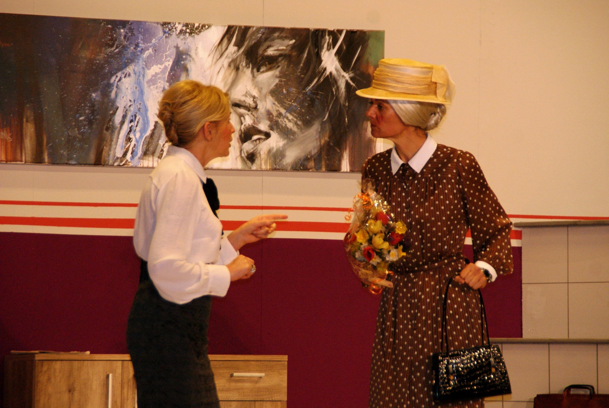 Ida Breitenbach (alias Paula Pickelmann) mit der zünftigen Amalie Wipperling (gespielt von Claudia Rusch).