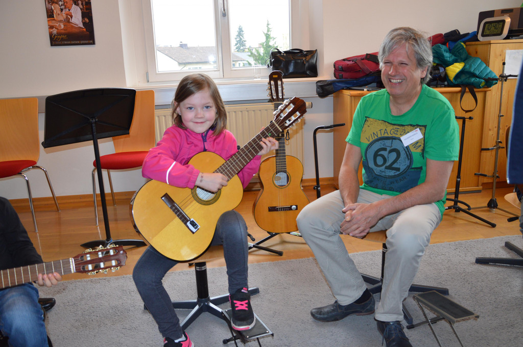 Timea hat an der Gitarre Gefallen gefunden (Lehrer Markus Holzmaier)