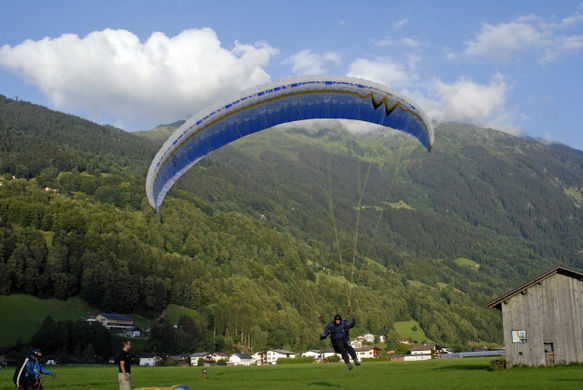 Paragleiterlandung in Schruns, am 12. August 2009.
