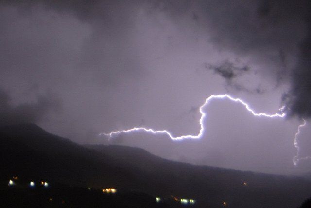 Gewitter im Zentrum des Montafons, am Donnerstag, dem 13. August 2009, gegen Mitternacht mit Blickrichtung Bartholomäberg-Innerberg. Aussicht vom Junkersboden in Tschagguns.