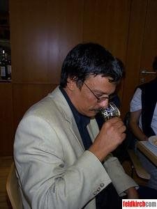 Pfarrer Wolfram Meuburger testet den Wein ganz gekonnt.