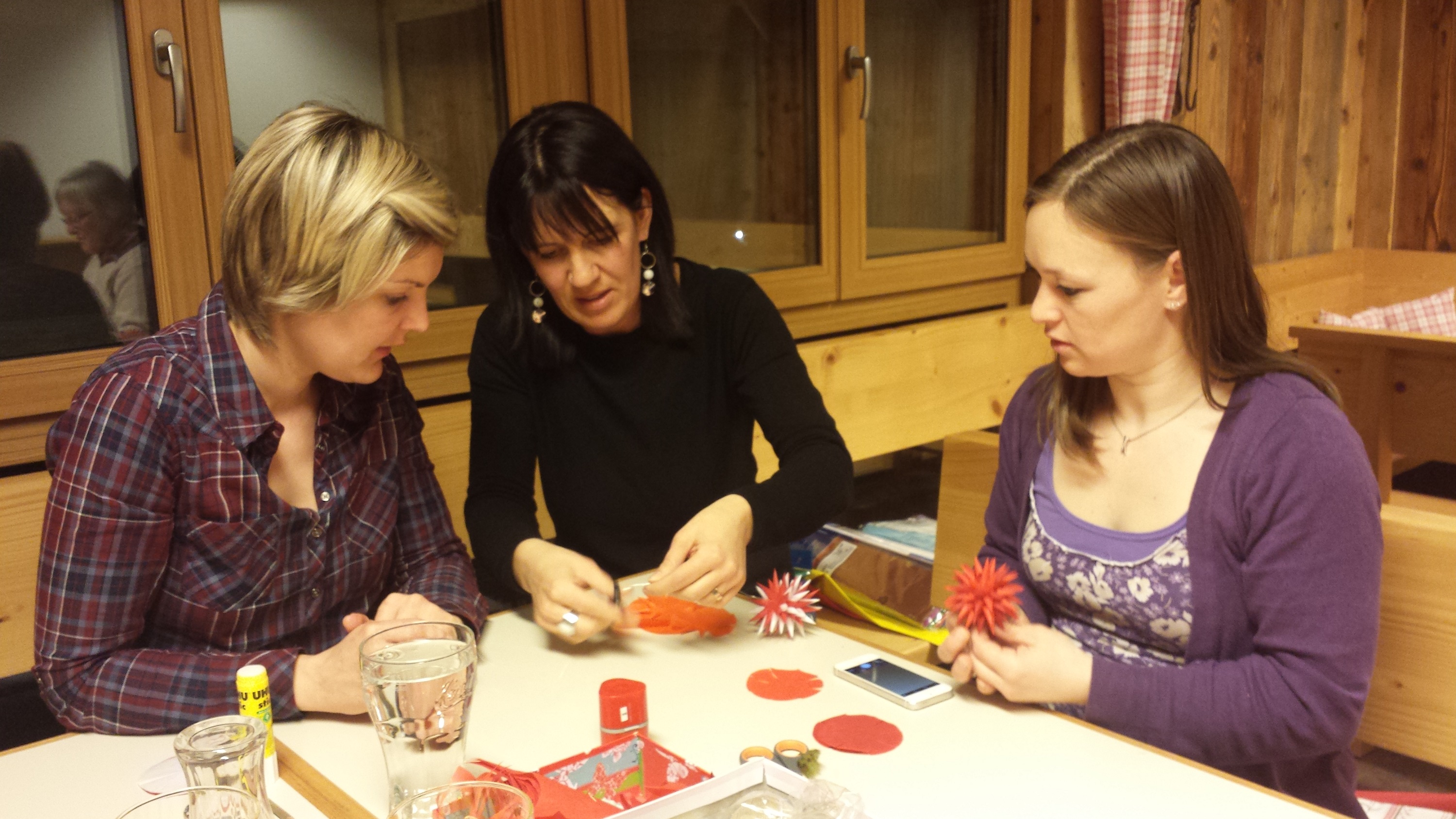 Gemeinsames Basteln der Palmblumen