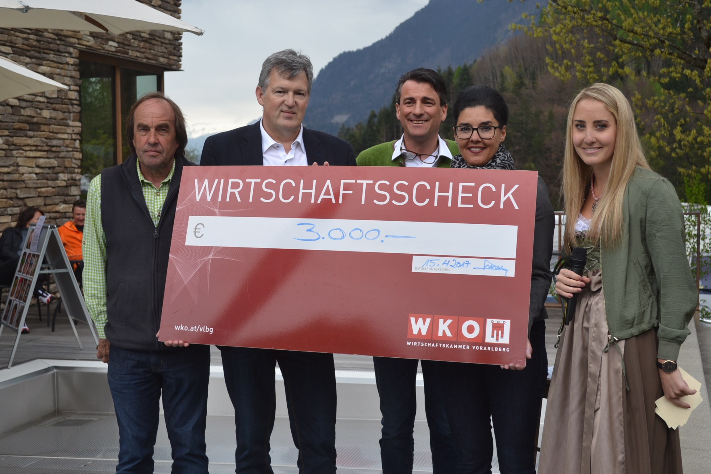 Mit 3.000 Euro unterstützte die Wirtschaftskammer Vorarlberg die Charity-Aktion – hier bei der Scheckübergabe an Familie Morik.