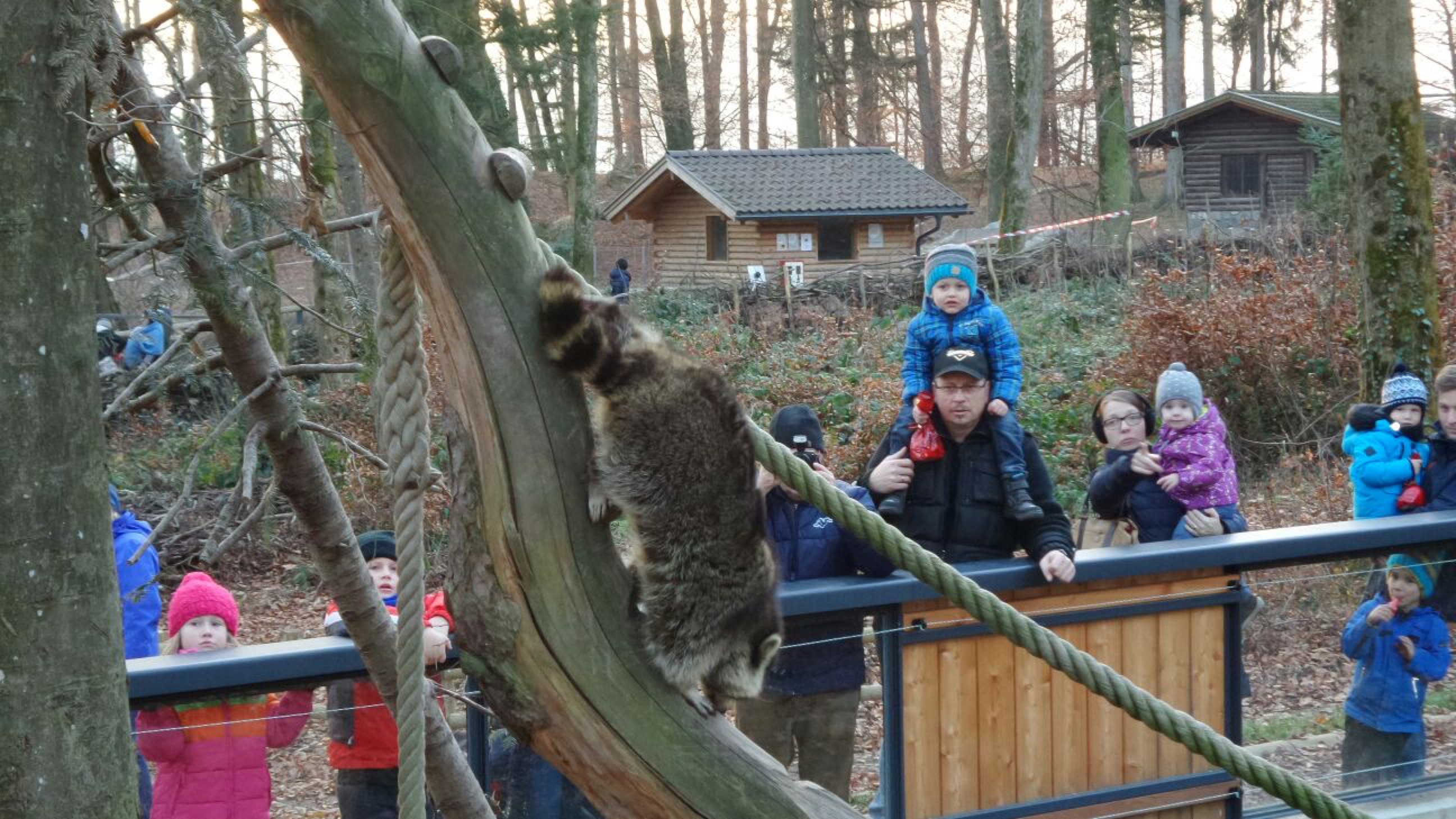 Beim Waschbärengehege hat eine Mutter ihr Kleinkind auf den durch ein Stromkabel geschützten und entsprechend beschilderten Zaun gesetzt, worauf das Kind einen kleinen Stromschlag bekommen hat.