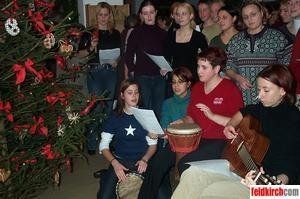Die Schülerinnen gaben sich alle Mühe und unterhielten das Publikum mit Gesang und Trommelschlägen.