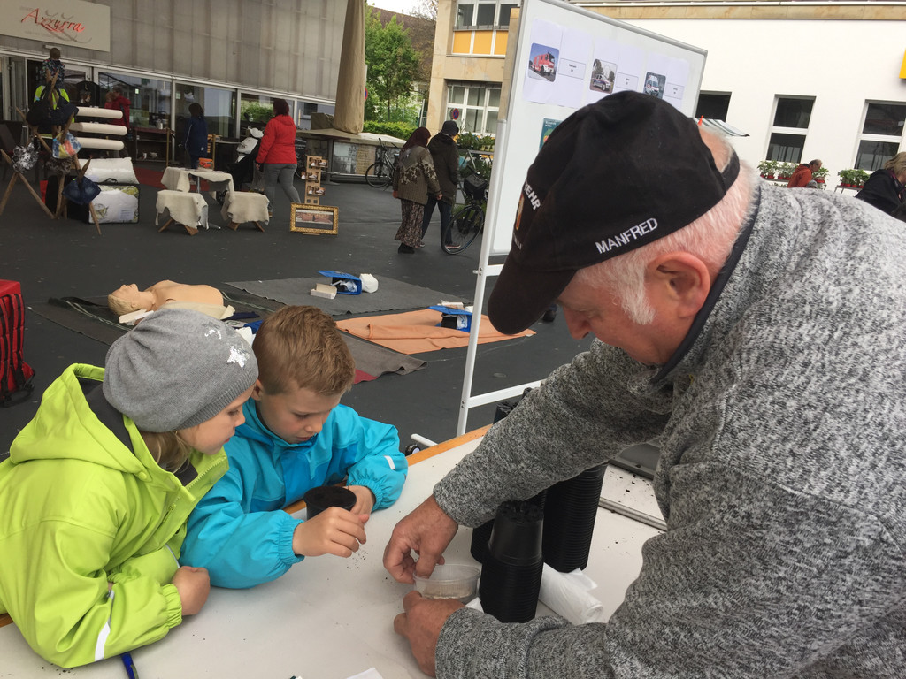 Sonnenblumen säen auf dem Kirchplatz