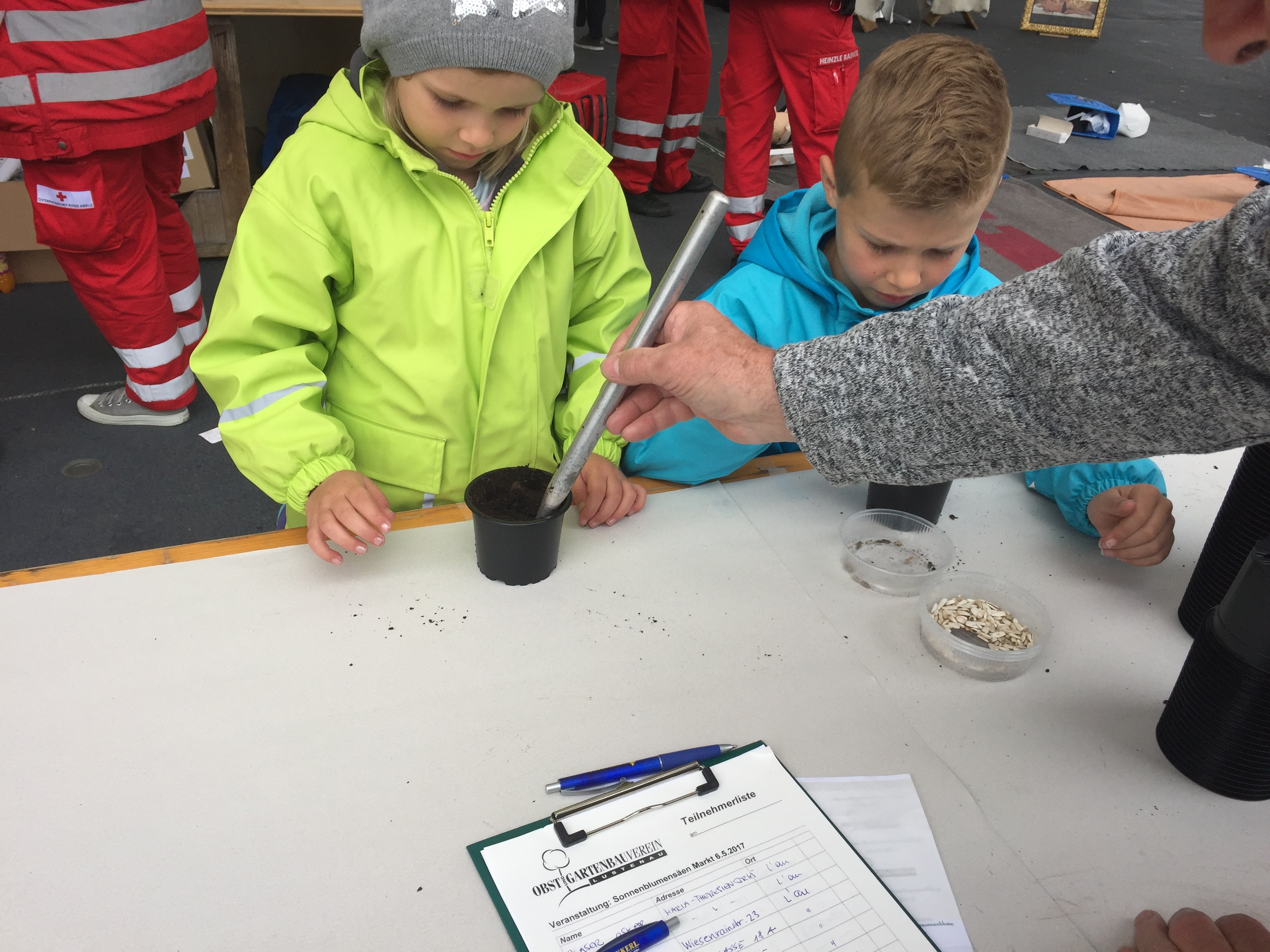 Sonnenblumen säen auf dem Kirchplatz