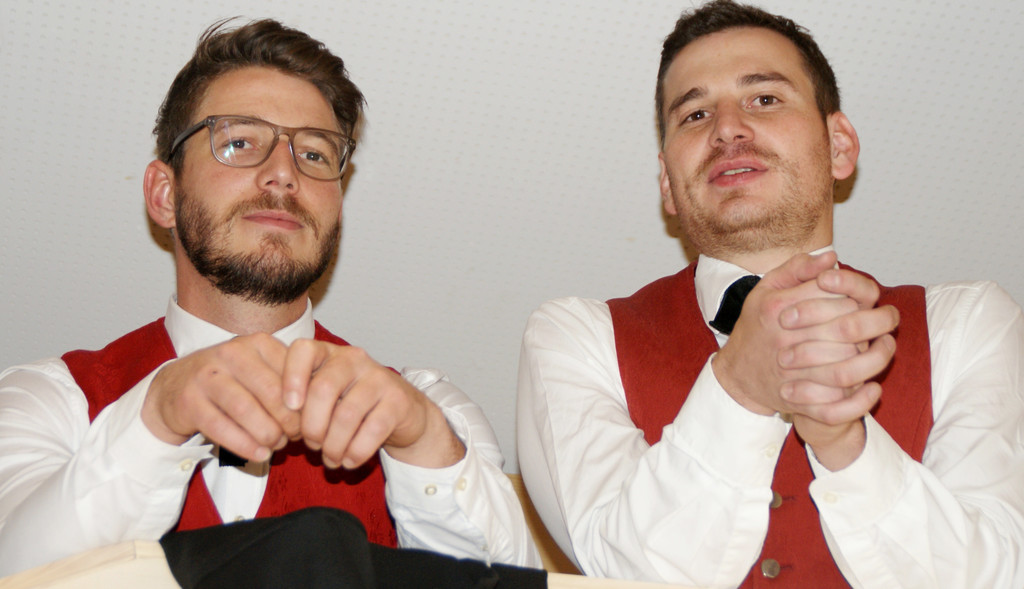 Gute Aussichten: Kapellmeister Magnus Lässer und Obmann Dominik Steurer freuen sich über den musikalischen Meilenstein im Bucher Mehrzweckhaus.