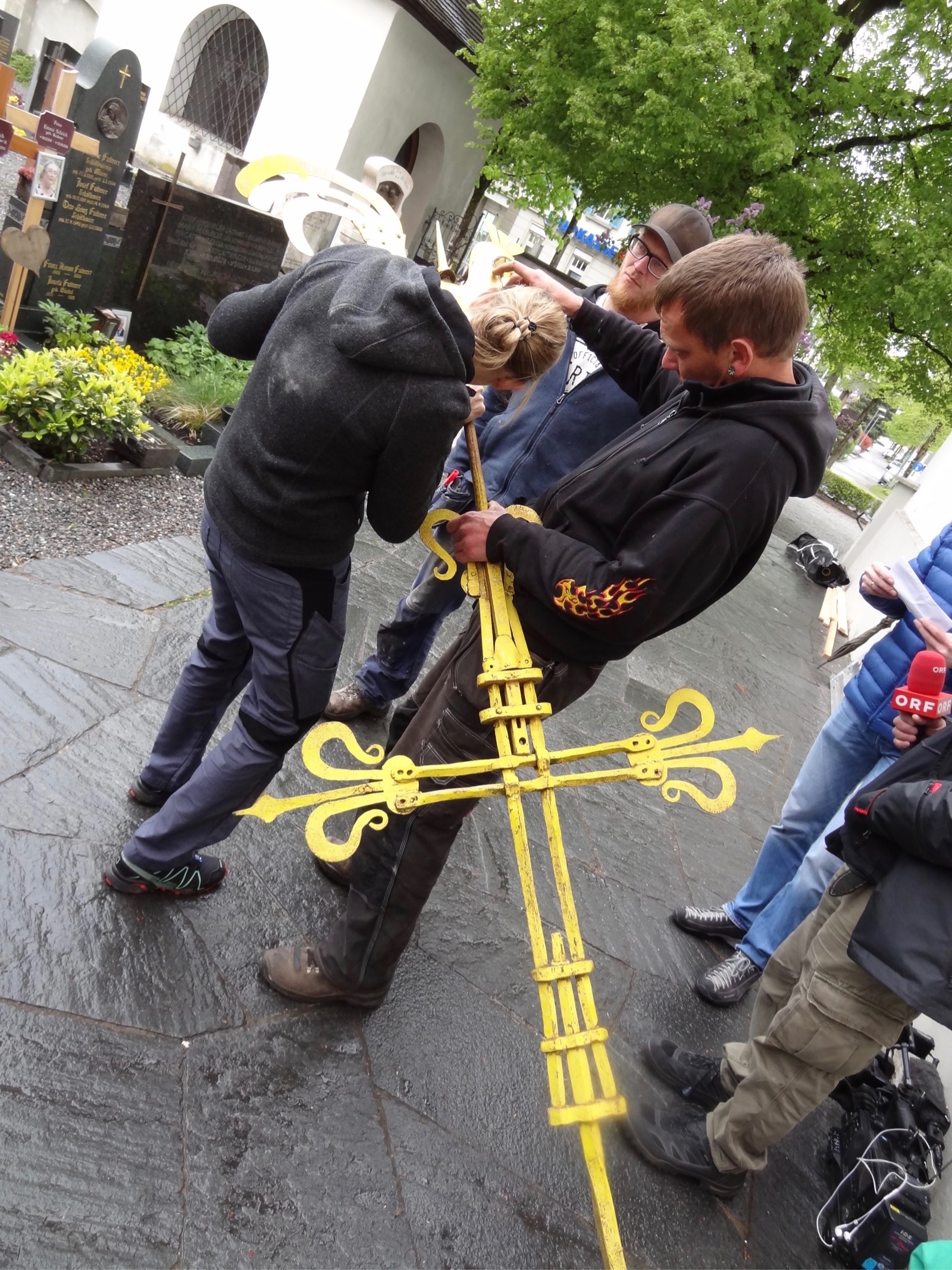Abnahme von Turmkreuz und Kugel für die Restaurierung (Foto Pfarre)