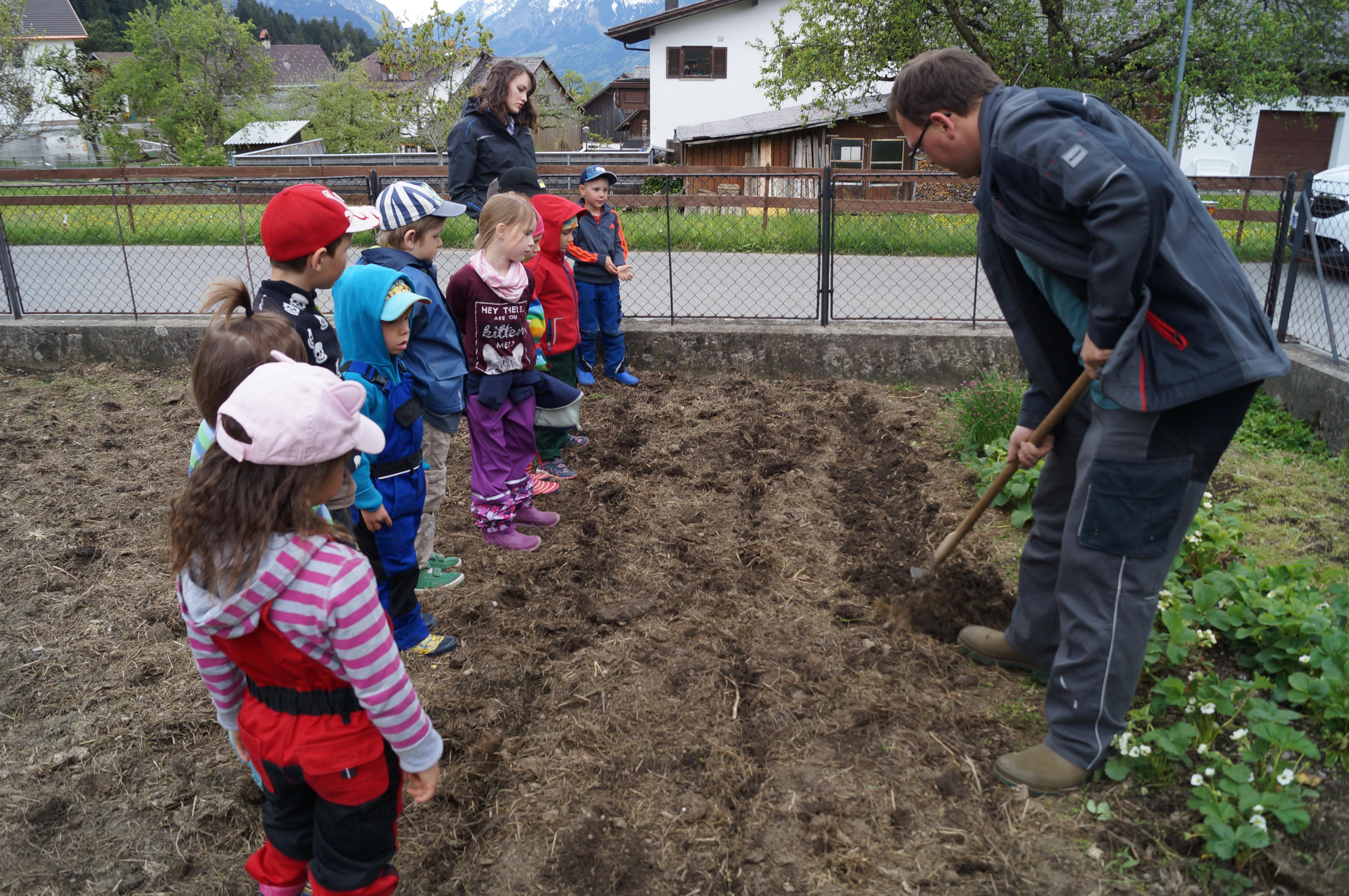 Kartoffeln stecken im "Kinder-Garten" Übersaxen