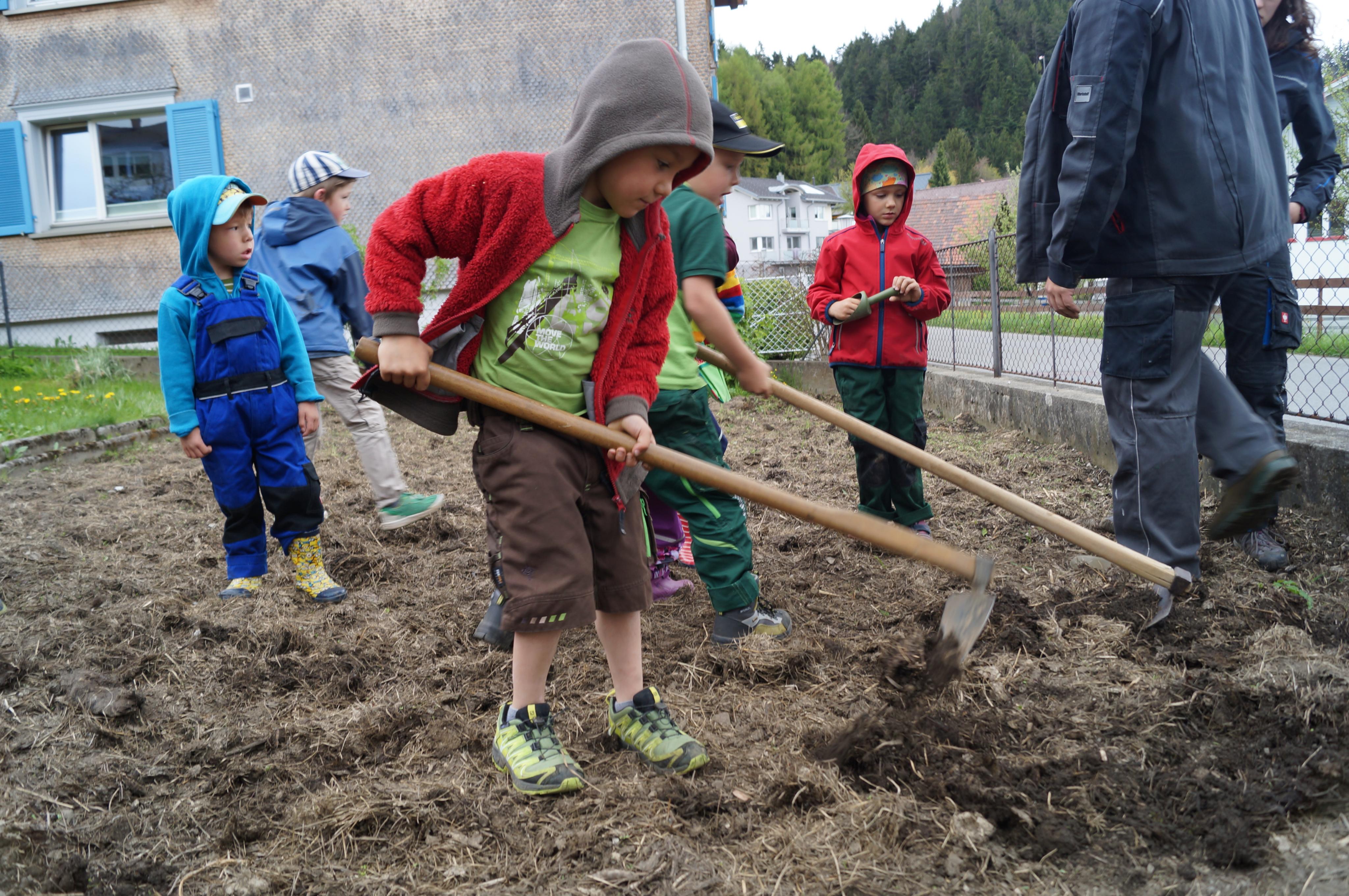 Kartoffeln stecken im "Kinder-Garten" Übersaxen