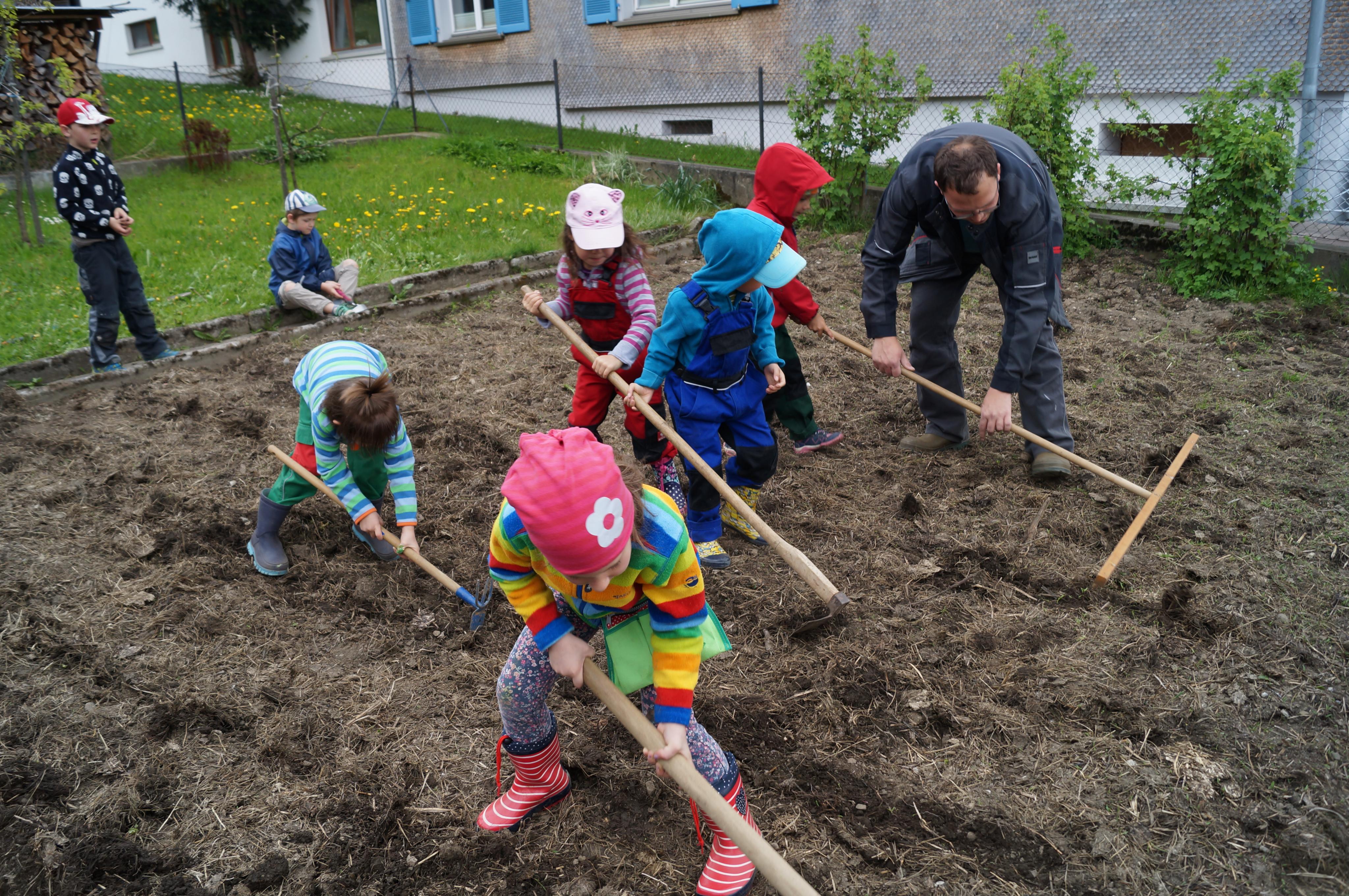 Kartoffeln stecken im "Kinder-Garten" Übersaxen