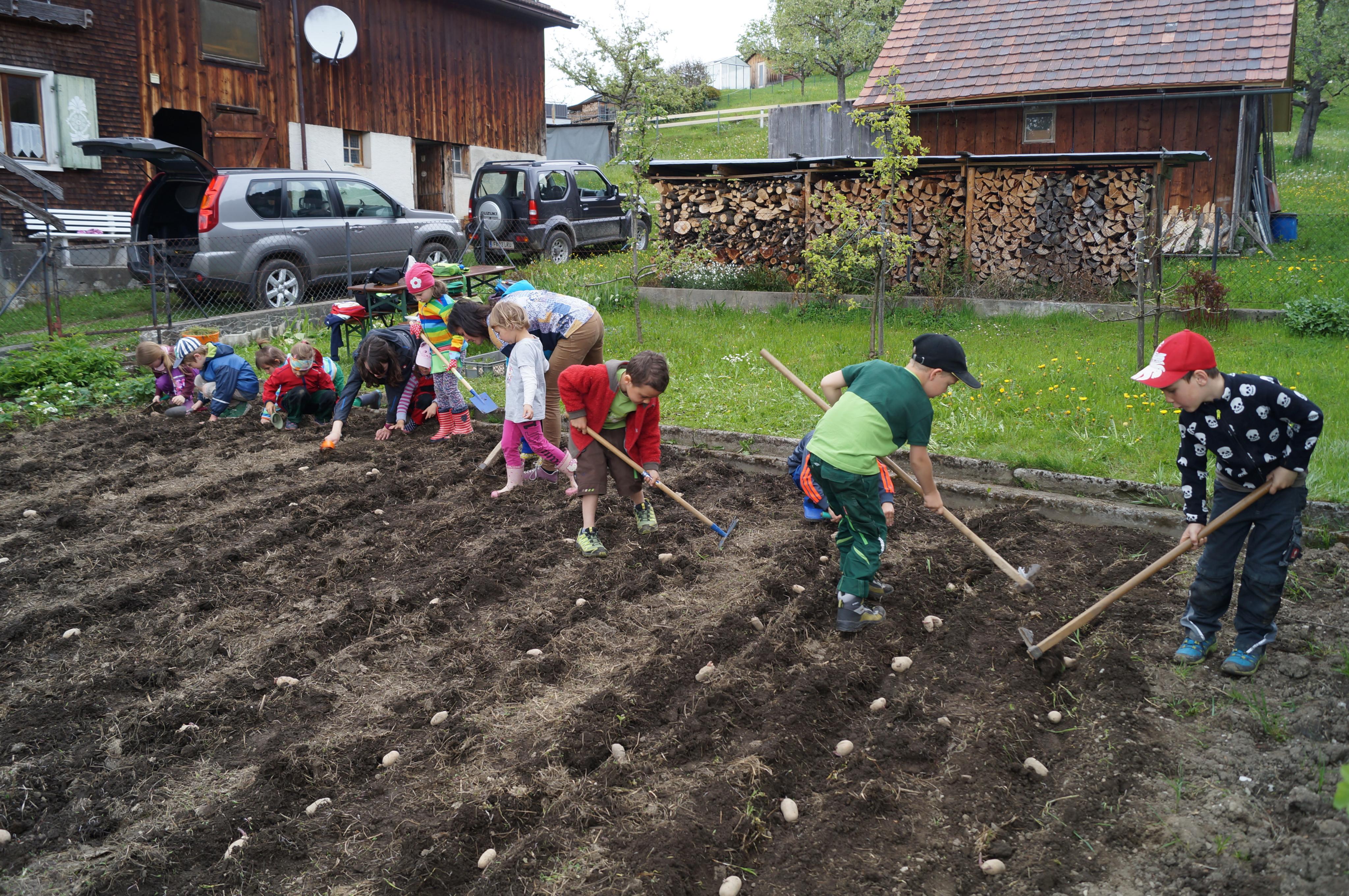 Kartoffeln stecken im "Kinder-Garten" Übersaxen